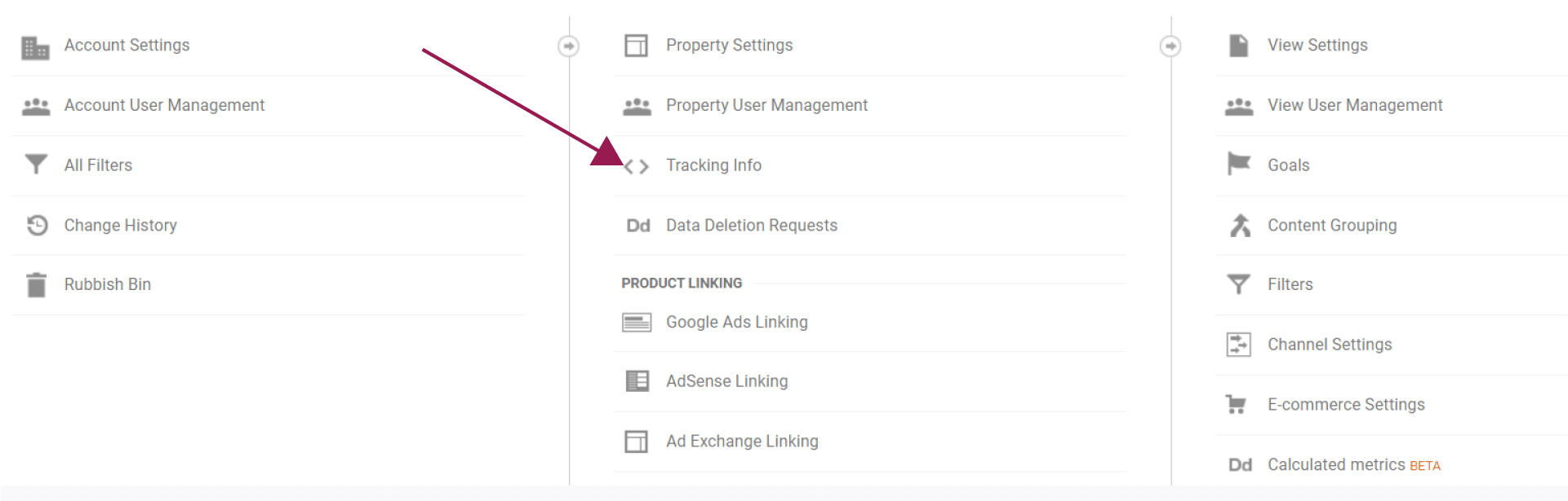 You need to change the code that your website uses to collect data for GA. You can find the HTML tracking code you currently use by navigating to the “Tracking Info” section in your GA account (see Steps 1a to 3a), but this time selecting “Tracking Code”:
